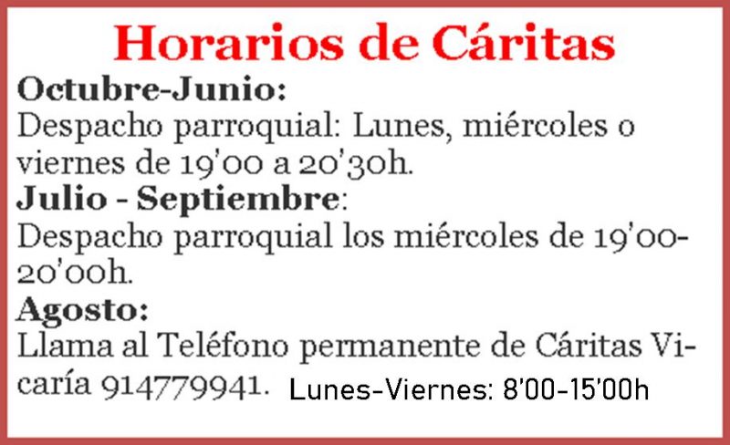 Horarios Caritas 2021